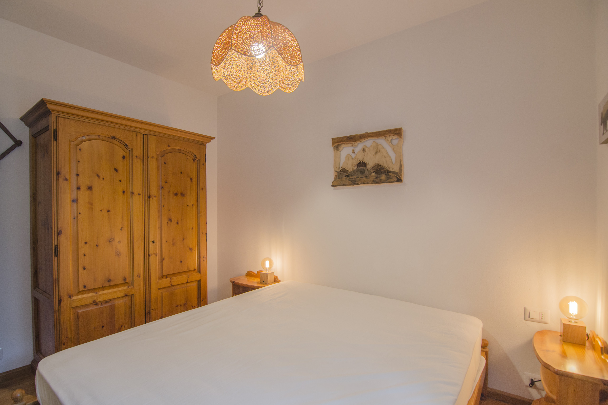 L'appartamento presenta una camera matrimoniale accogliente, arredata elegantemente in uno stile alpino raffinato con toni naturali che invitano al riposo e al relax. Il bagno è moderno e ben attrezzato, offrendo tutti i comfort di cui hai bisogno in uno spazio accuratamente curato.