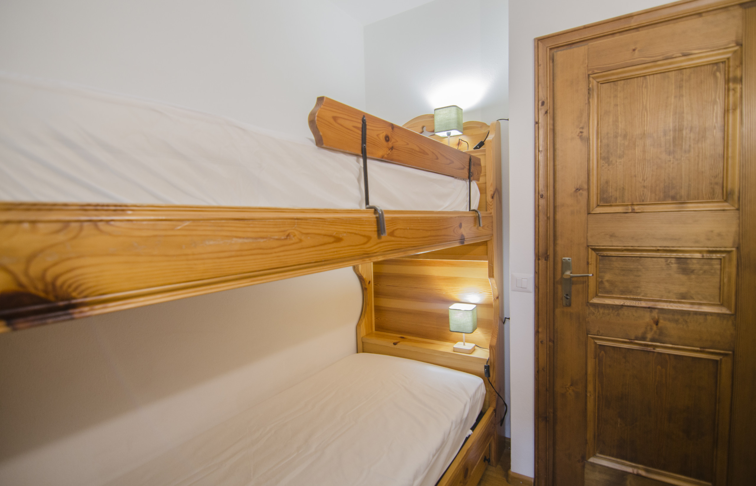La zona notte comprende una camera matrimoniale, una camera con letto a castello e un bagno moderno dotato di tutti i comfort.