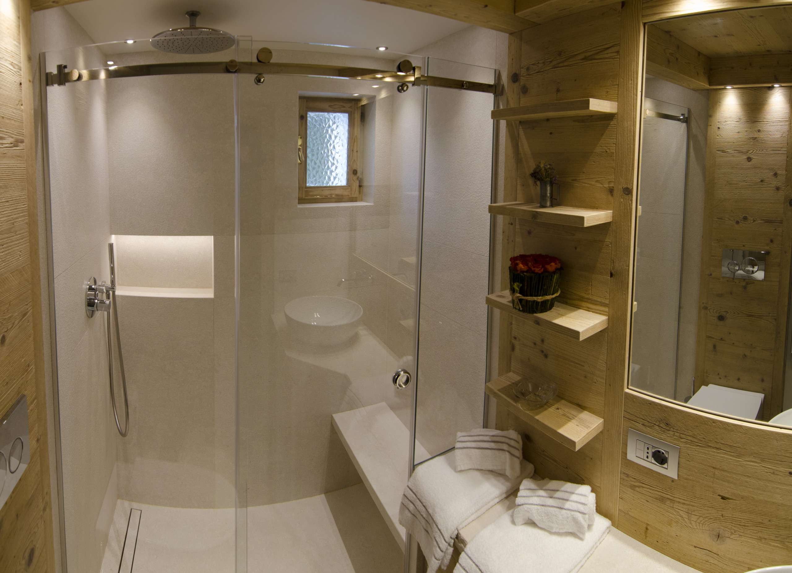 L'appartamento presenta una camera matrimoniale accogliente, arredata elegantemente in uno stile alpino raffinato con toni naturali che invitano al riposo e al relax. Il bagno è moderno e ben attrezzato, offrendo tutti i comfort di cui hai bisogno in uno spazio accuratamente curato.