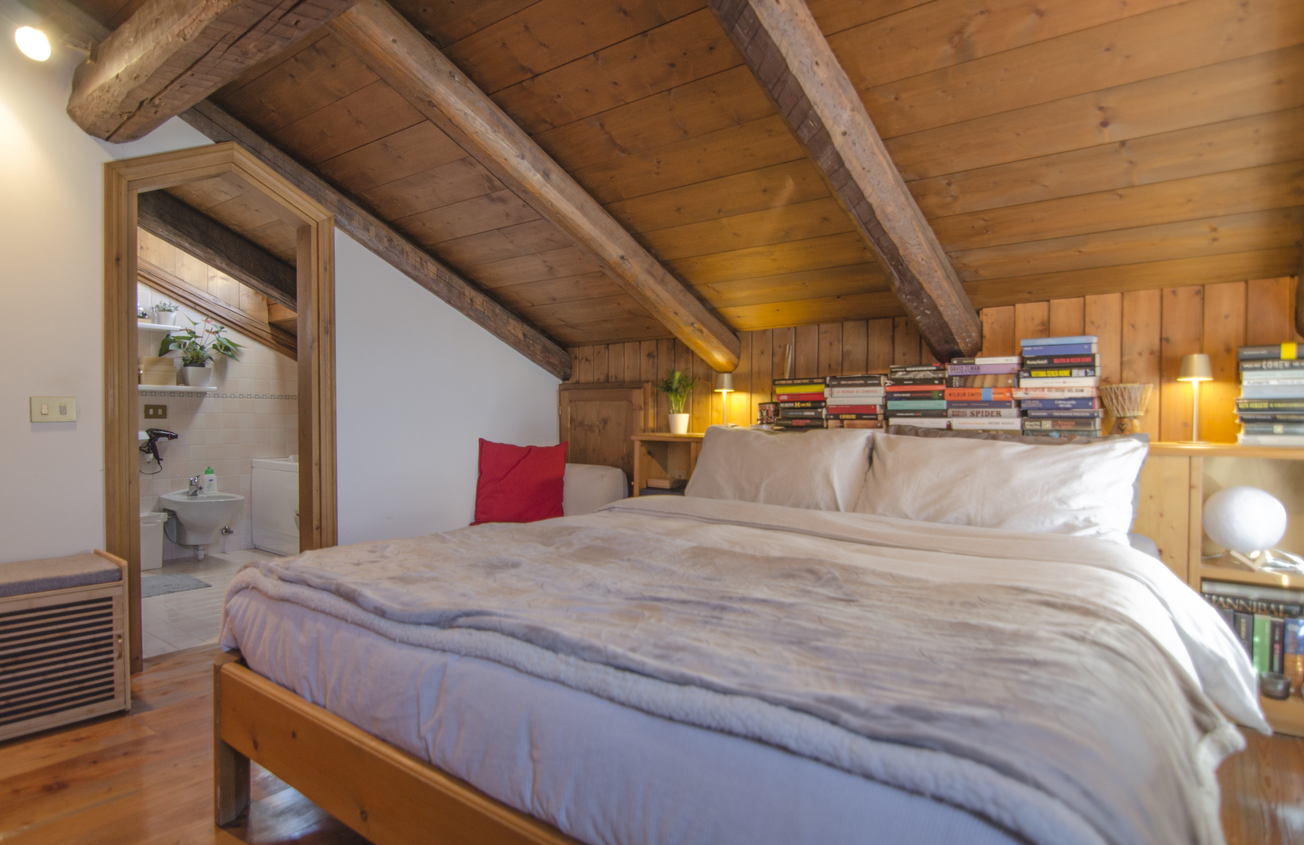 L'appartamento presenta una camera matrimoniale accogliente, arredata elegantemente in uno stile alpino raffinato con toni naturali che invitano al riposo e al relax. Il bagno è moderno e ben attrezzato, offrendo tutti i comfort di cui hai bisogno in uno spazio accuratamente curato.