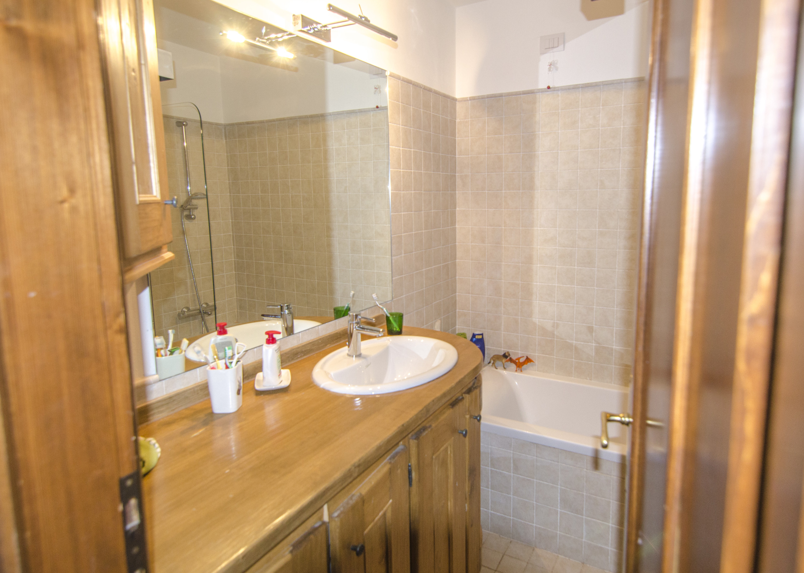 L’alloggio dispone di un luminoso soggiorno, cucina attrezzata, una camera matrimoniale, una camera con letto a castello e bagno. Completa la proprietà un posto auto riservato in garage, comodo in ogni stagione.